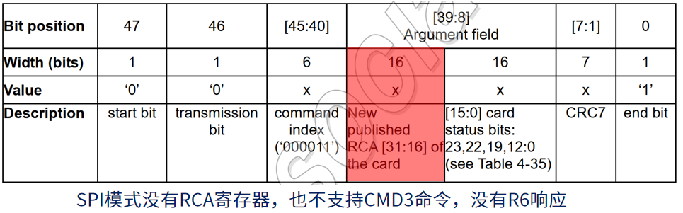 R6响应:专用于命令CMD3的响应(RCA响应)