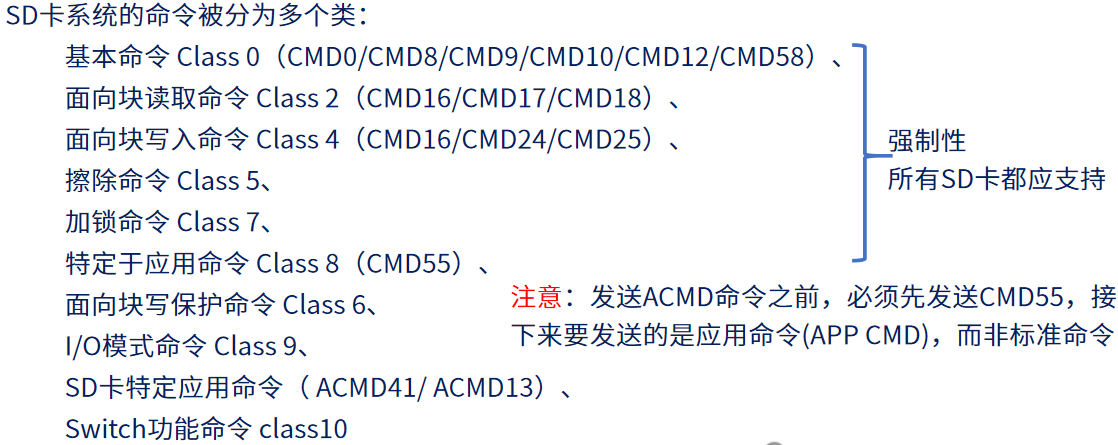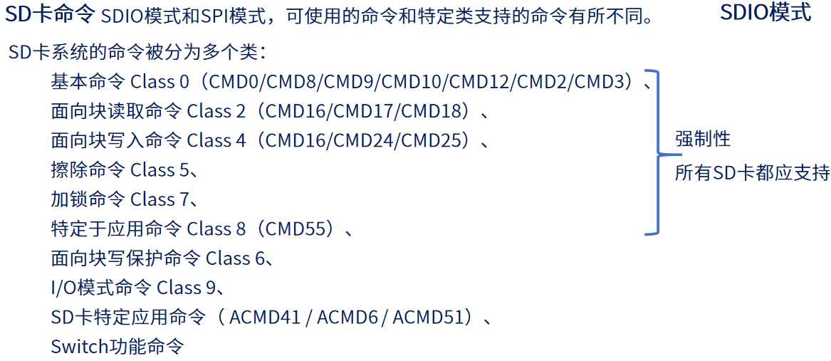 SDIO模式和SPI模式,可使用的命令和特定类支持的命令有所不同。