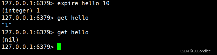 就可以发现,我们设置key为hello的过期时间是10秒,然后在十秒内进行获取key是可以获取到的,但是在十秒之外获取到的key就是nil了,说明这里的key已经过期了~~~