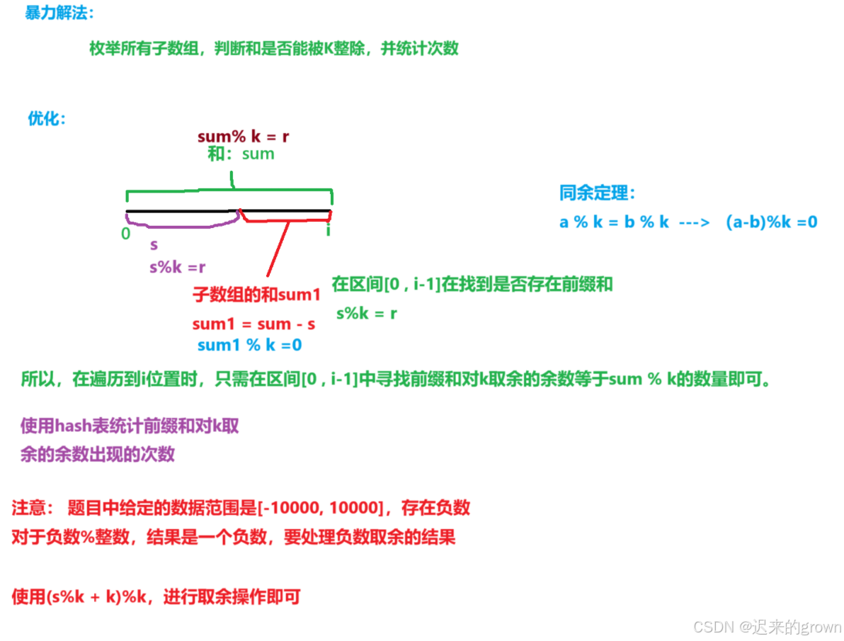 那如何判断子数组的和能否被k整除,统计次数呢?(依次判断时间复杂度就和暴力解法一样了)
