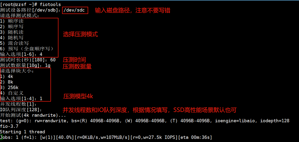 下载使用fiotools: 注意:先查看需要压测的磁盘,否则压错磁盘会导致数据丢失。