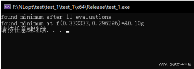 if (nlopt_optimize(opt, x, &minf) < 0)