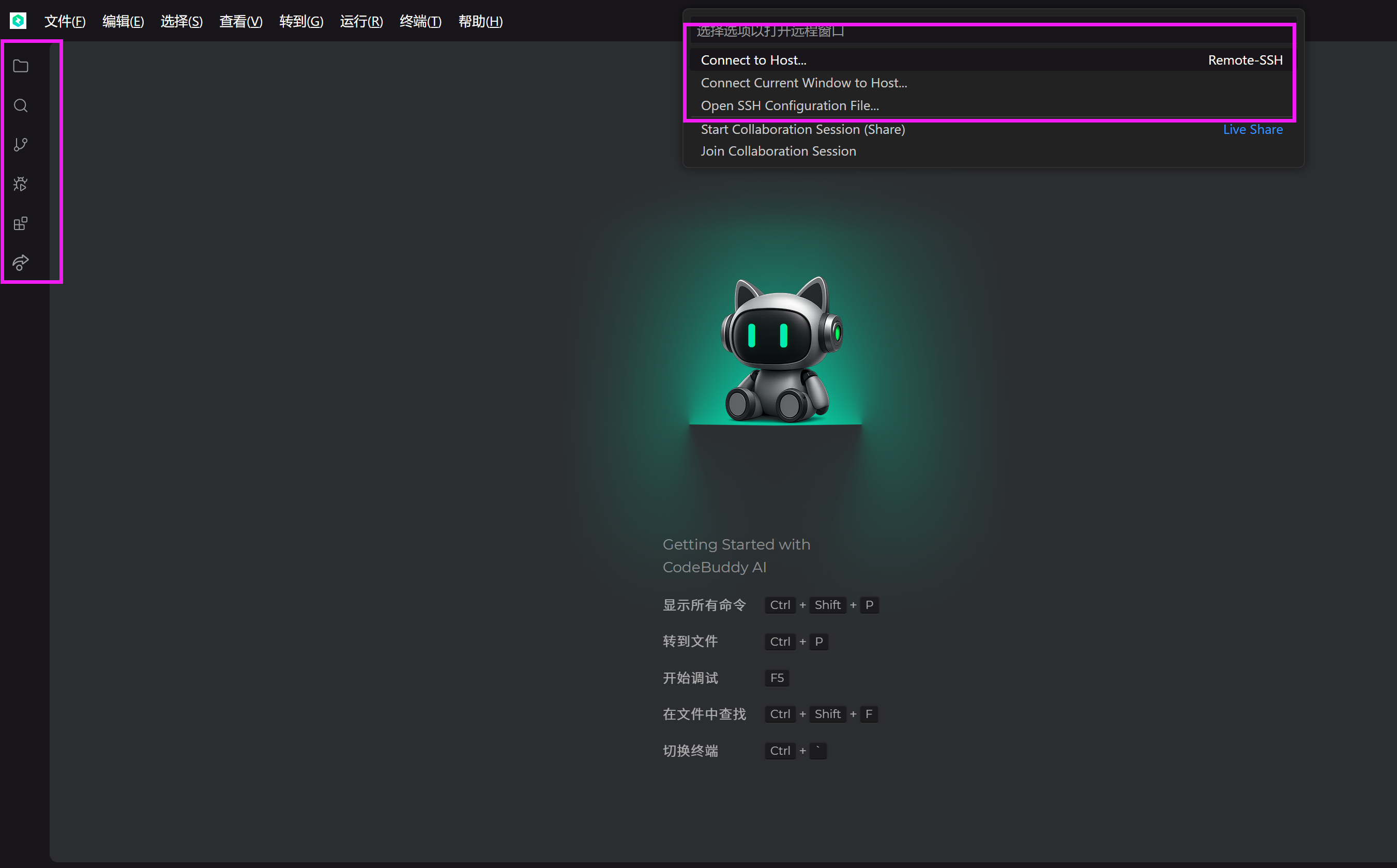 在我的多次尝试中,CodeBuddy 的 SSH 连接功能完全无法正常工作。输入服务器地址、用户名和密码后,终端窗口毫无反应,既没有连接成功的提示,也没有任何错误信息,仿佛一个无法按下的按钮。对于一个旨在成为“全栈工程师”的 IDE 来说,这无疑是釜底抽薪。如果不能稳定地连接到我们的生产环境或开发服务器,那么再强大的代码生成能力,也只是空中楼阁。