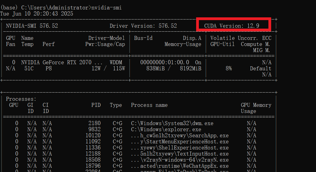 可以看到显卡最高支持到cuda12.9,我们在后续的cuda版本中要选择12.9以下的。