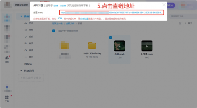 在新弹出的窗口中,点击解析完成的“直链下载地址”。如果 IDM 没有自动弹出,请打开 IDM 的设置窗口,将文件后缀添加到“文件类型”列表。