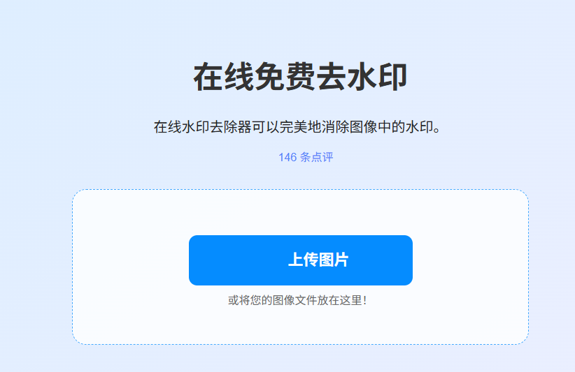 Vidmore Free Watermark Remover Online 是一个基于网络的工具。它使您能够从图像中删除文本、图像、徽标等,而不会留下任何痕迹。借助强大的AI技术,这款在线水印去除器可以准确定位水印并完美去除。此外,支持多种流行的图片格式,如JPG/JPEG/PNG/BMP/TIFF等。只需上传您的图片即可尝试。