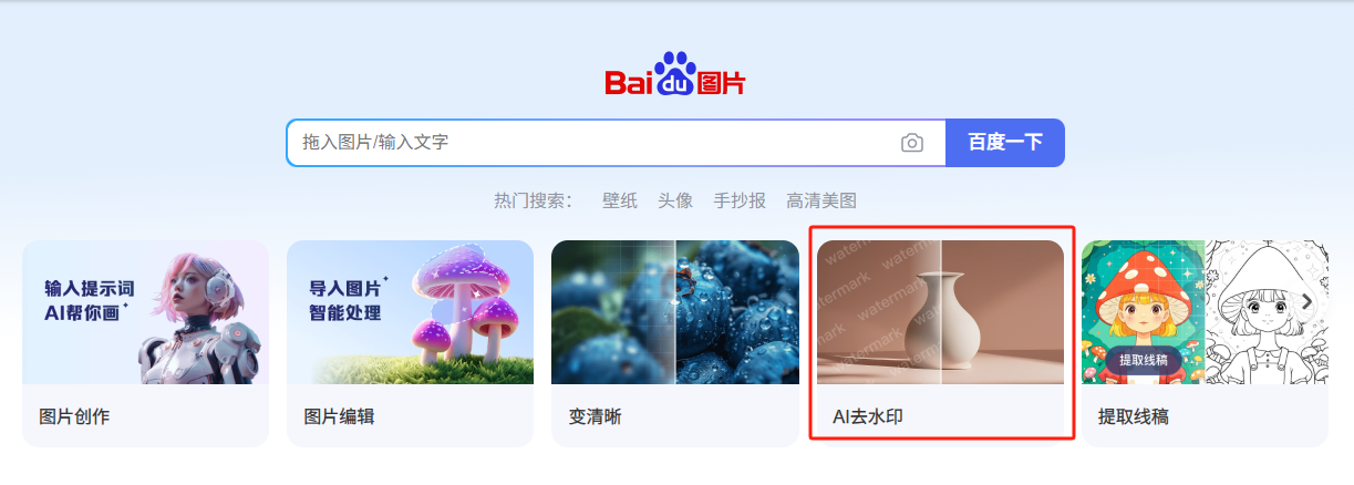 百度图片,提供了多种图片处理方式,可以把图片变清晰,去水印,文字替换等功能