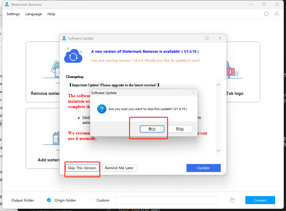 下载完成后,解压压缩包,在文件中直接双击Apowersoft Watermark Remover.exe打开软件,在弹出的对话匡中按以下图操作: