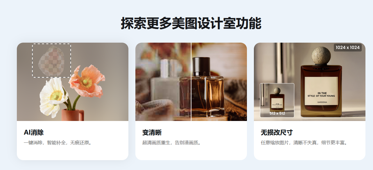 美图秀秀的功能就比较强大了,基本编辑,商品编辑等都有