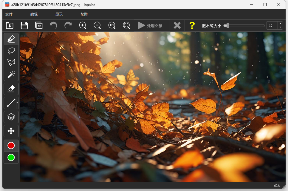 主要是非常小,不占地方,但该有的功能还是有的,Inpaint是一款简单实用的图片去水印软件,只需将对象物体选定后,Inpaint会帮你全自动进行擦除,同时Inpaint会根据附近图片区域重建擦除的区域,使看起来无瑕,没有痕迹。