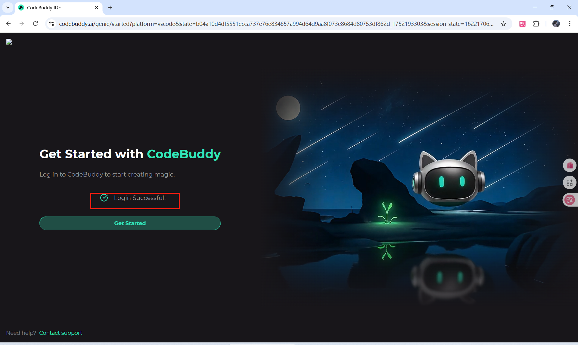 点击"CodeBuddy"进入登入页面,呈现画面还是不错的。
