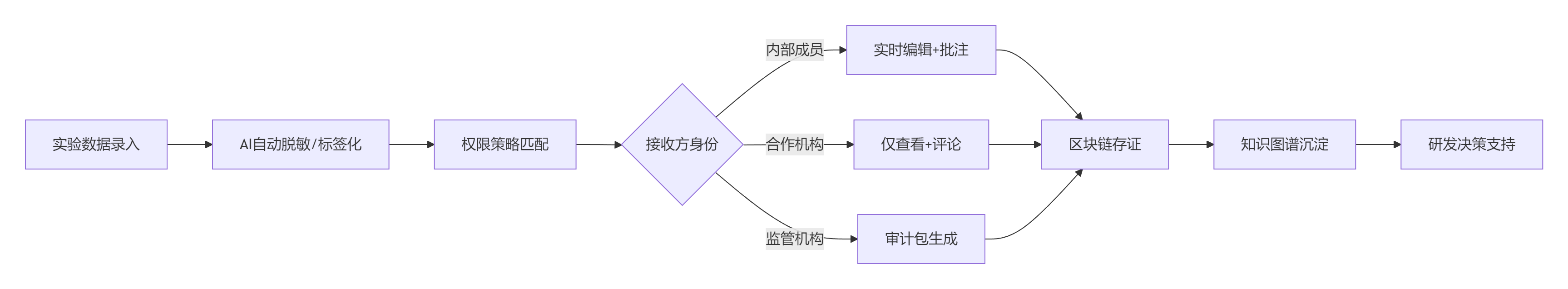 关键技术突破: 知识图谱引擎:关联实验记录、文献专利、分子结构库 冲突解决机制: 多版本修改冲突 → AI比对差异 → 自动标红提示 → 人工决策合并 某CRO企业应用后,跨国多中心协作周期缩短35%