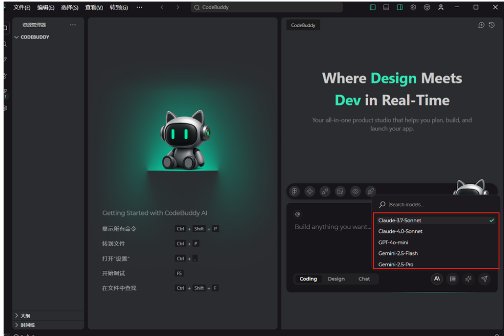 CodeBuddy 内置 Claude 3.7、GPT-4、Gemini 2.5 Pro 等顶级大模型,将 “技术实现” 转化为 “自然语言对话”。支持文本、图片上传,AI 能自动生成结构化代码,并兼容主流技术规范。