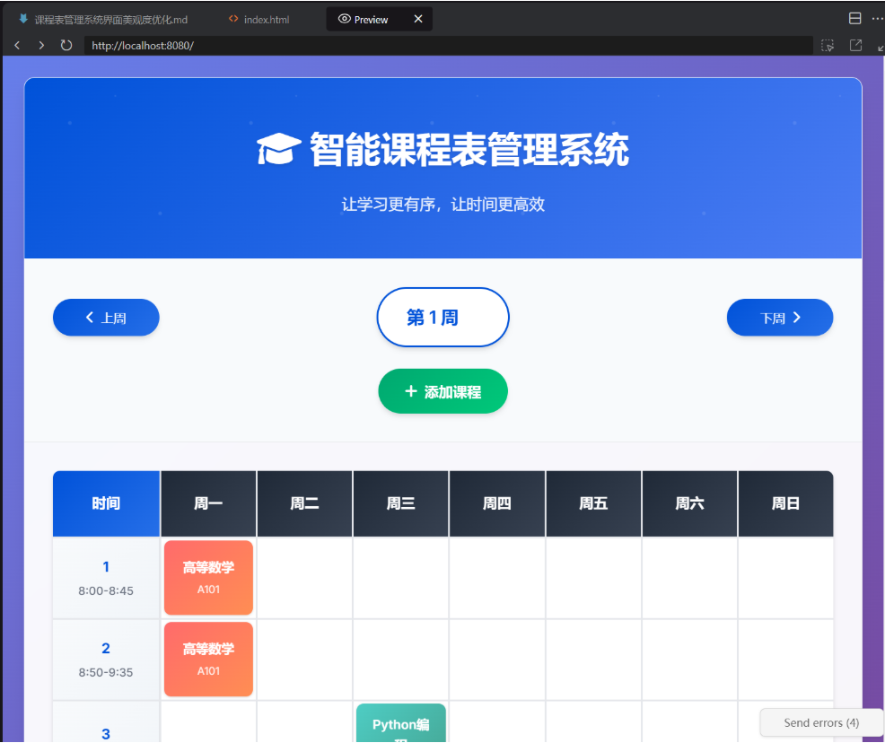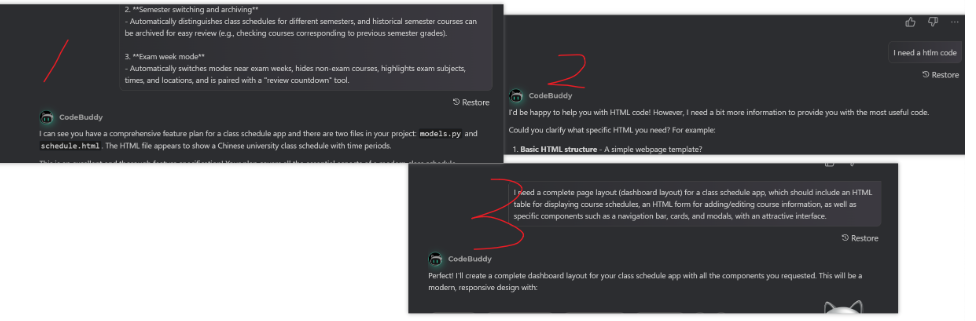 我只进行了三轮对话,就搞定了一个课程表网页雏形