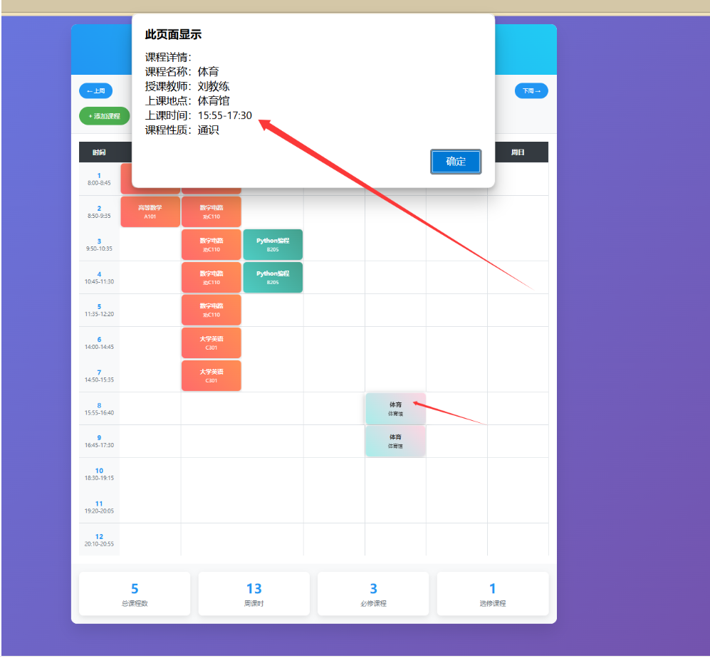 复制网址在浏览器打开后的效果,确实更精美了。课程性质、课次选择和星期选择都是已下拉框形式呈现的,课程详情界面也比以前精致不少。下方新增了可直接添加课程的模块。