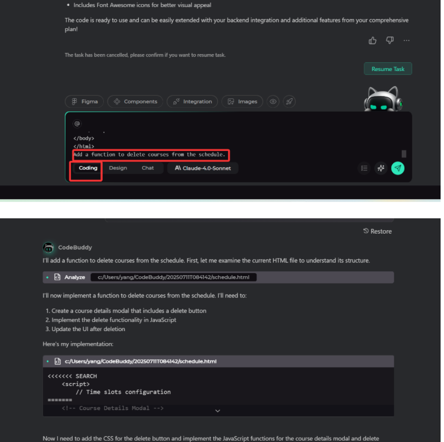 codebuddy对原本代码界面进行了分析、设计和重新计划可以说是非常细致。