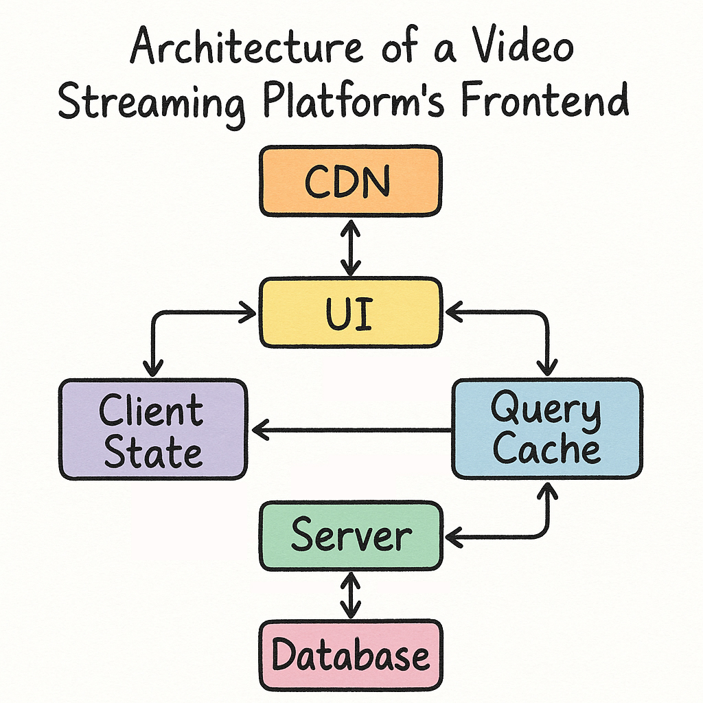 Create a hand-drawn style diagram for the "Architecture of a Video Streaming Platform's Frontend" with the following structure: