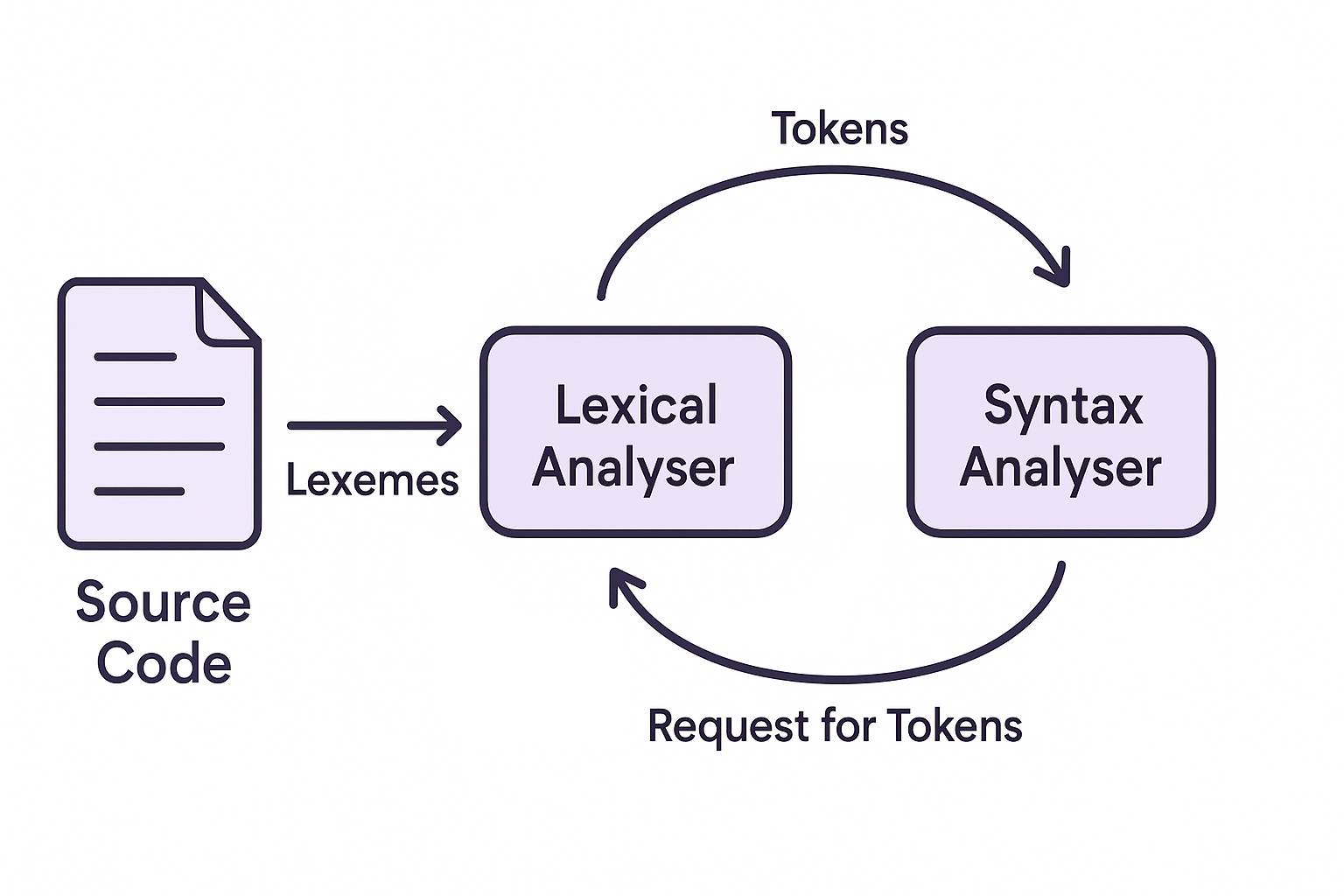 From "Syntax Analyser" back to "Lexical Analyser" (curved arrow): "Request for Tokens".