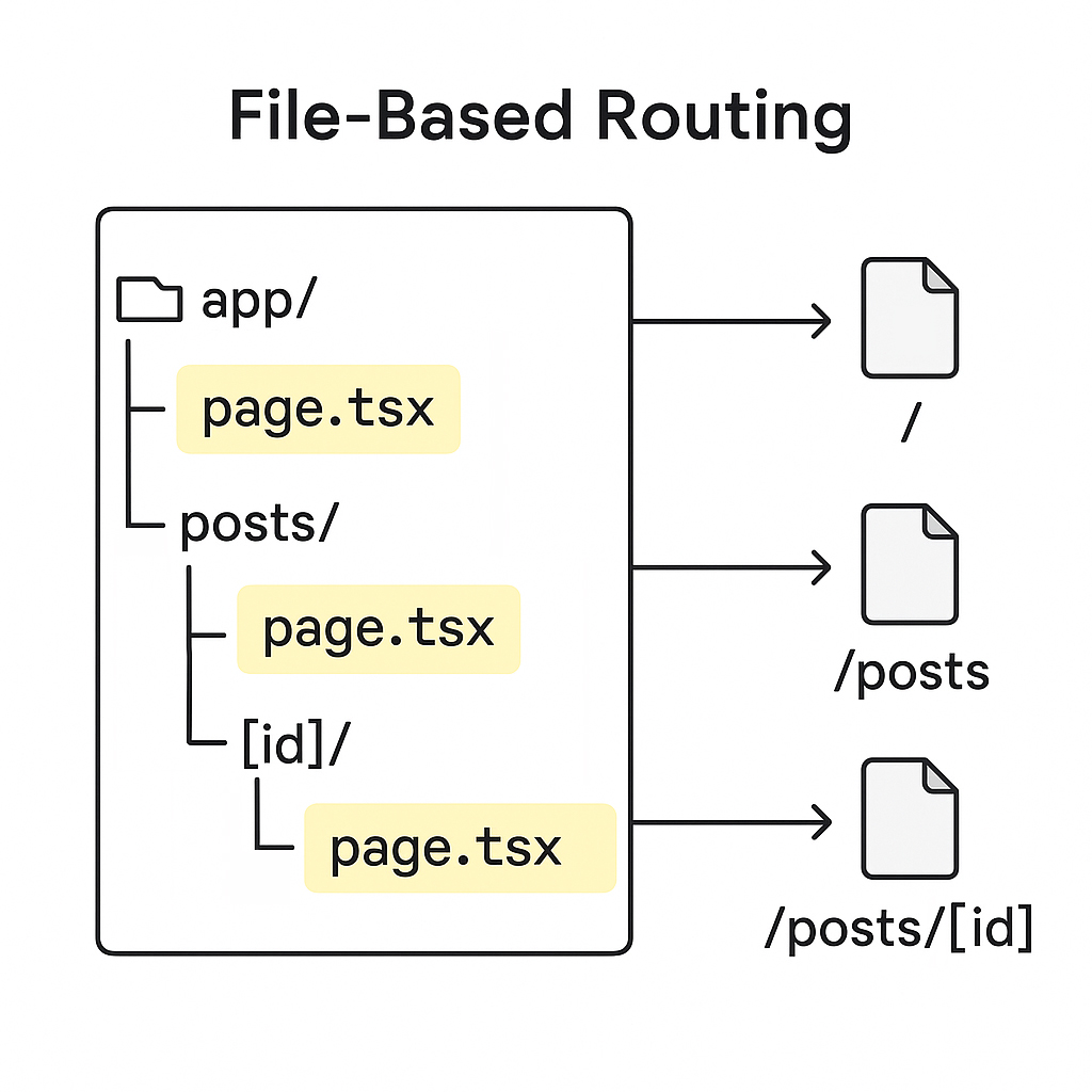 Create a diagram illustrating a file-based routing system for a web application using the following structure and style: