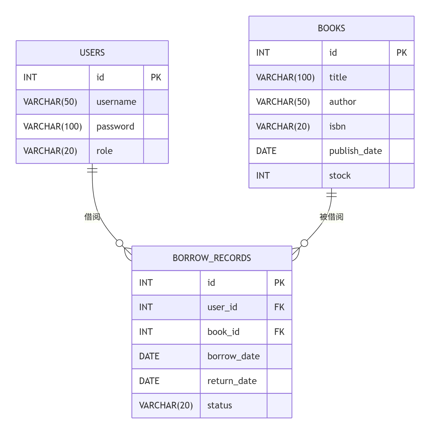 status | VARCHAR(20) | DEFAULT 'BORROWED' | 状态(已借/已还) |