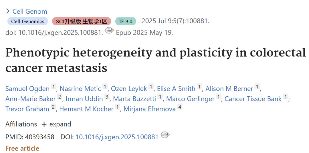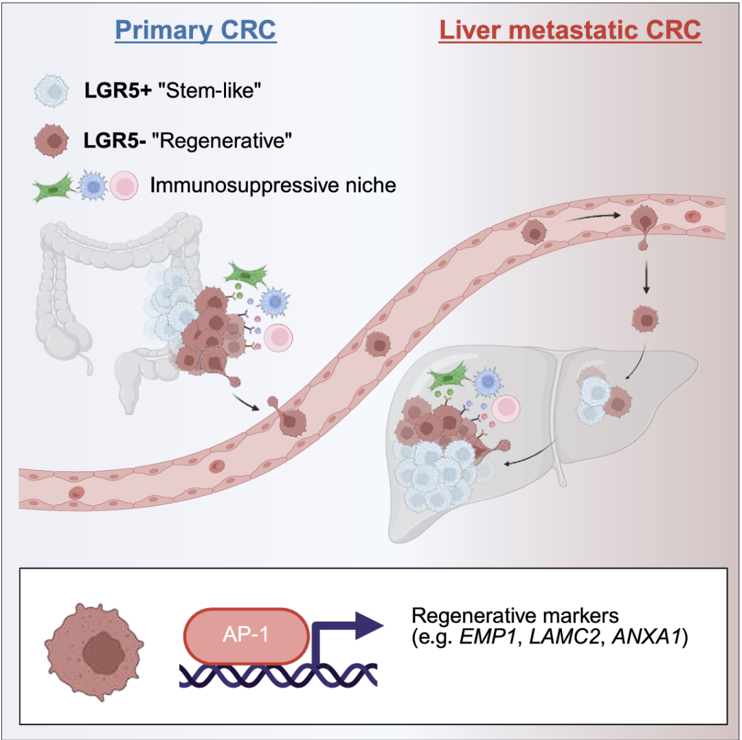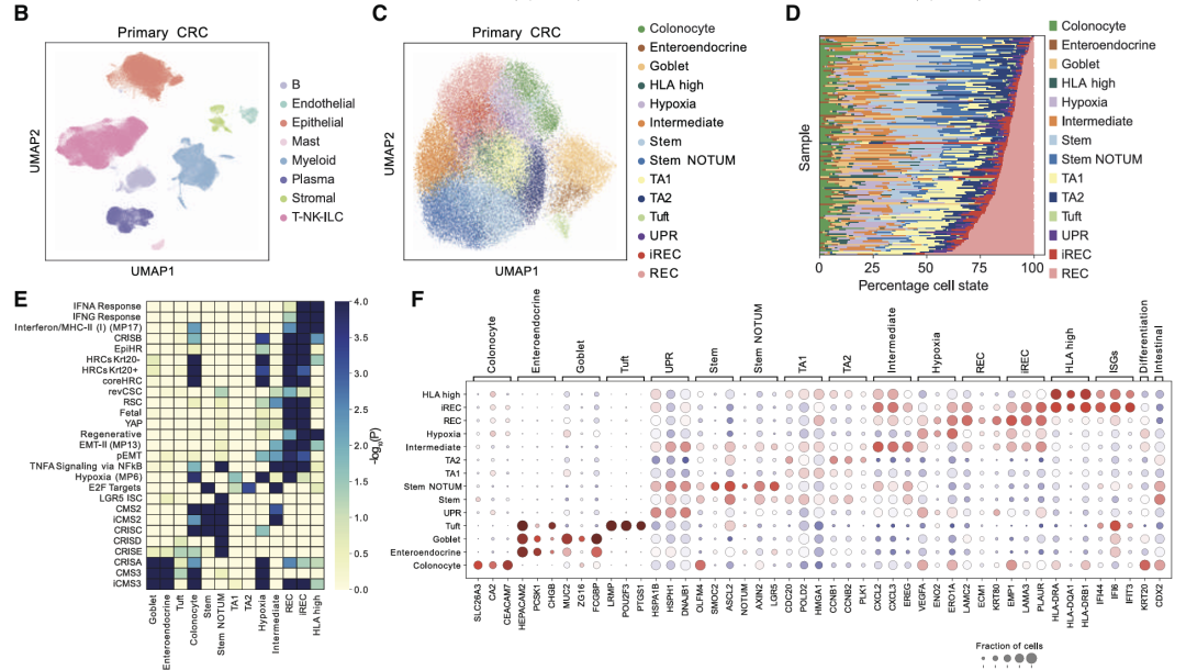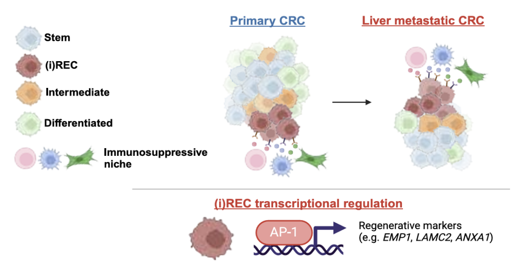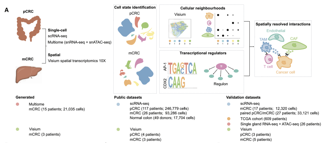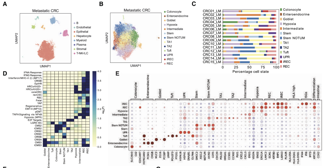方法:结合来自原发性和转移性CRC患者的单细胞多组学和空间转录组学数据,揭示了具有再生和炎症表型的癌细胞状态,这些表型与小鼠模型中的转移起始细胞非常相似。
