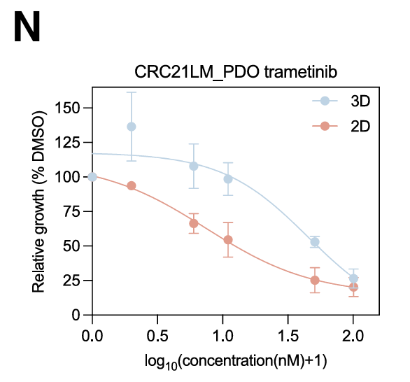 使用FDA批准的抑制剂曲美替尼,2D类器官显示出对MEK抑制的敏感性增加,表明特定的癌症状态具有特定的治疗脆弱性。总的来说,这表明MAPK信号传导与iREC 状态相关。