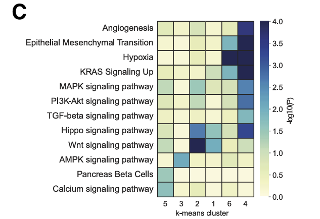 iREC状态(簇 4 和 6)中PE-GL簇中基因的GEA显示出缺氧、EMT、丝裂原活化蛋白激酶(MAPK)、磷脂酰肌醇3-激酶和肿瘤坏死因子α(TNF-α)信号传导的富集,而WNT信号传导富集于干细胞NOTUM(簇1和2)细胞,支持转录组学数据。