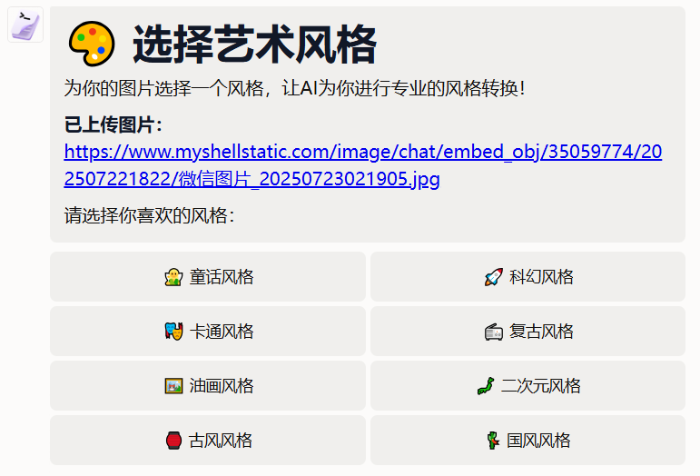 比如我创作的一个制作表情包APP,能够根据上传的图片生成不同风格的图像。