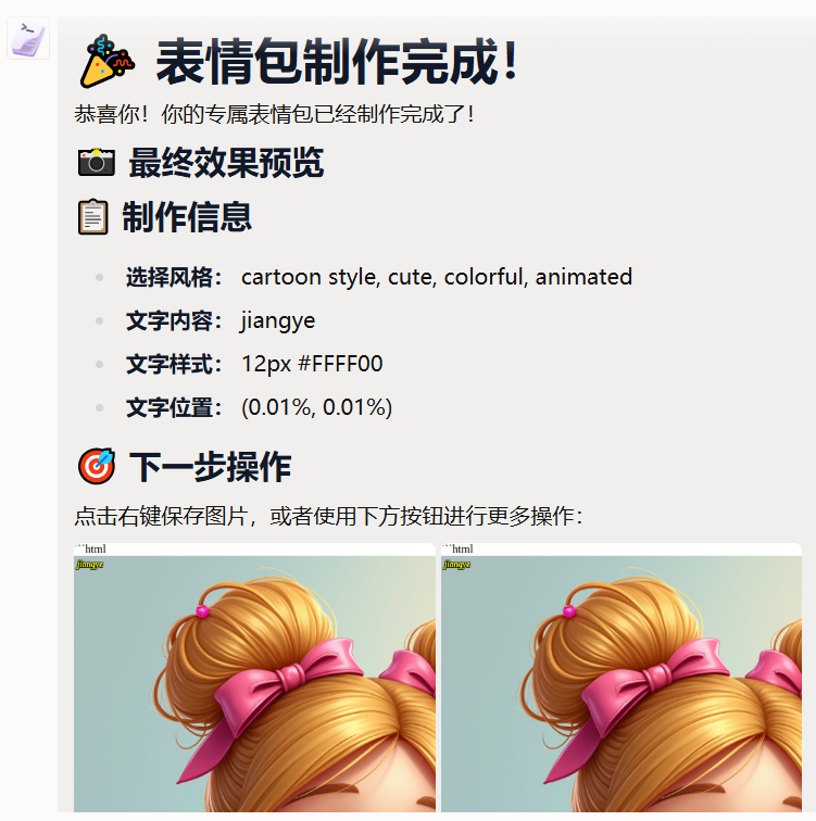 最终经过不间断的调整和测试,为我生成了这样的表情包。