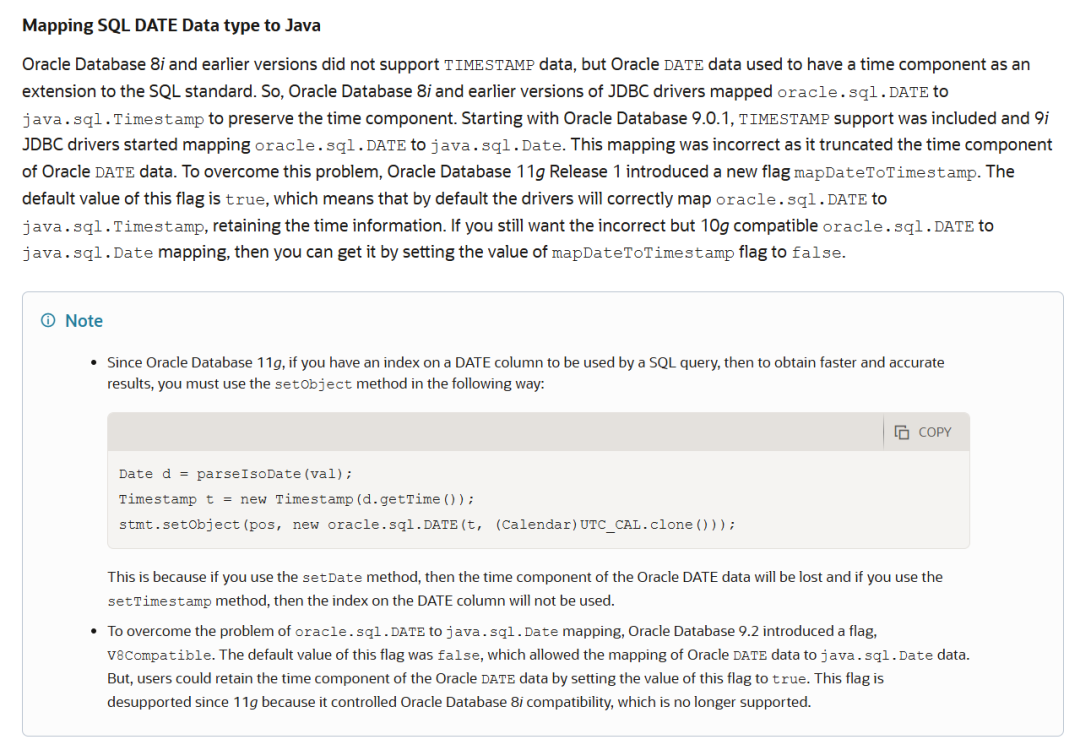 同事碰到个问题,他们的数据库从Oracle 11g升级到Oracle 19c,对应Java代码要将jdbc驱动从ojdbc14.jar升级到ojdbc7.jar,发现一个date参数的问题。