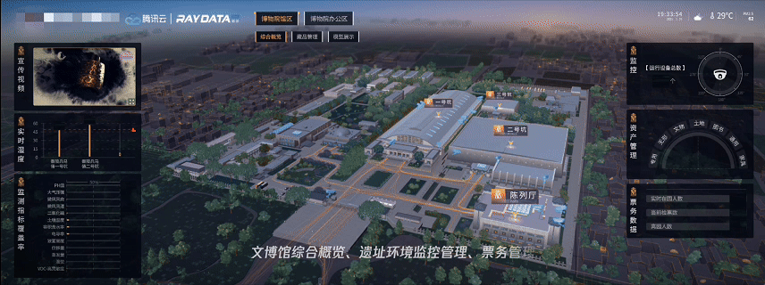 其核心建设内容涵盖四大方面:一是对文博场馆建筑和文物进行高精度复原呈现,让观众能细致感受其风貌;二是实时监控展厅内的环境指标,为文物保存提供保障;三是建立文物的数字档案库,系统整合文物相关信息;四是整合办公区的人员安排、物资调配等内容,实现办公区运营协同。