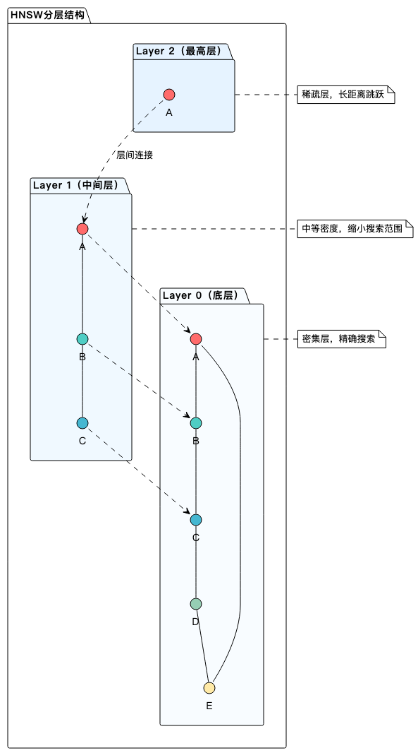 HNSW通过构建多层图结构来实现高效搜索: