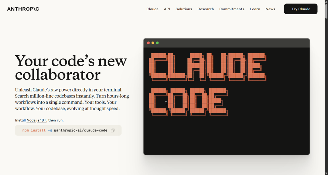 npm install -g @anthropic-ai/claude-code 安装,需确保系统支持 Node.jsclaude 命令,开始使用
