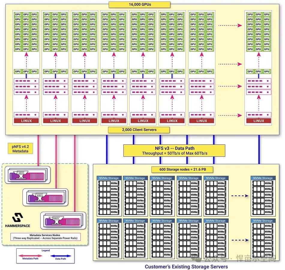 在对市场上所有存储供应商进行评估后,最终选择与Hammerspace合作,“因为只有Hammerspace不需要在其服务器集群安装客户端,要知道,安装任何程序都会导致系统不稳定,带来无法估量的损失;同时Hammerspace具有无可比拟的性能扩展能力。” Hammerspace使工程师们能够使用数千块GPU对作业执行交互式调试,因为环境中的所有节点都可以立即访问代码更改。同时,我们的Tectonic分布式存储解决方案和Hammerspace的组合可以在不影响规模的情况下实现快速迭代。