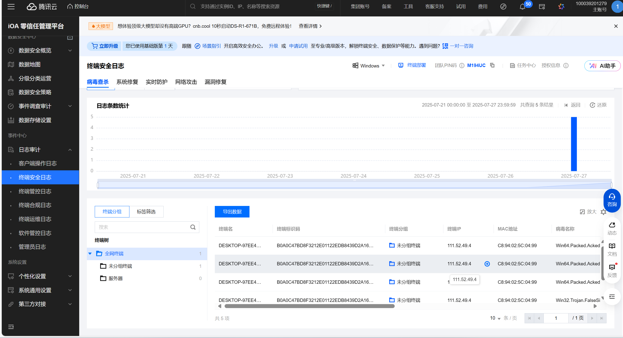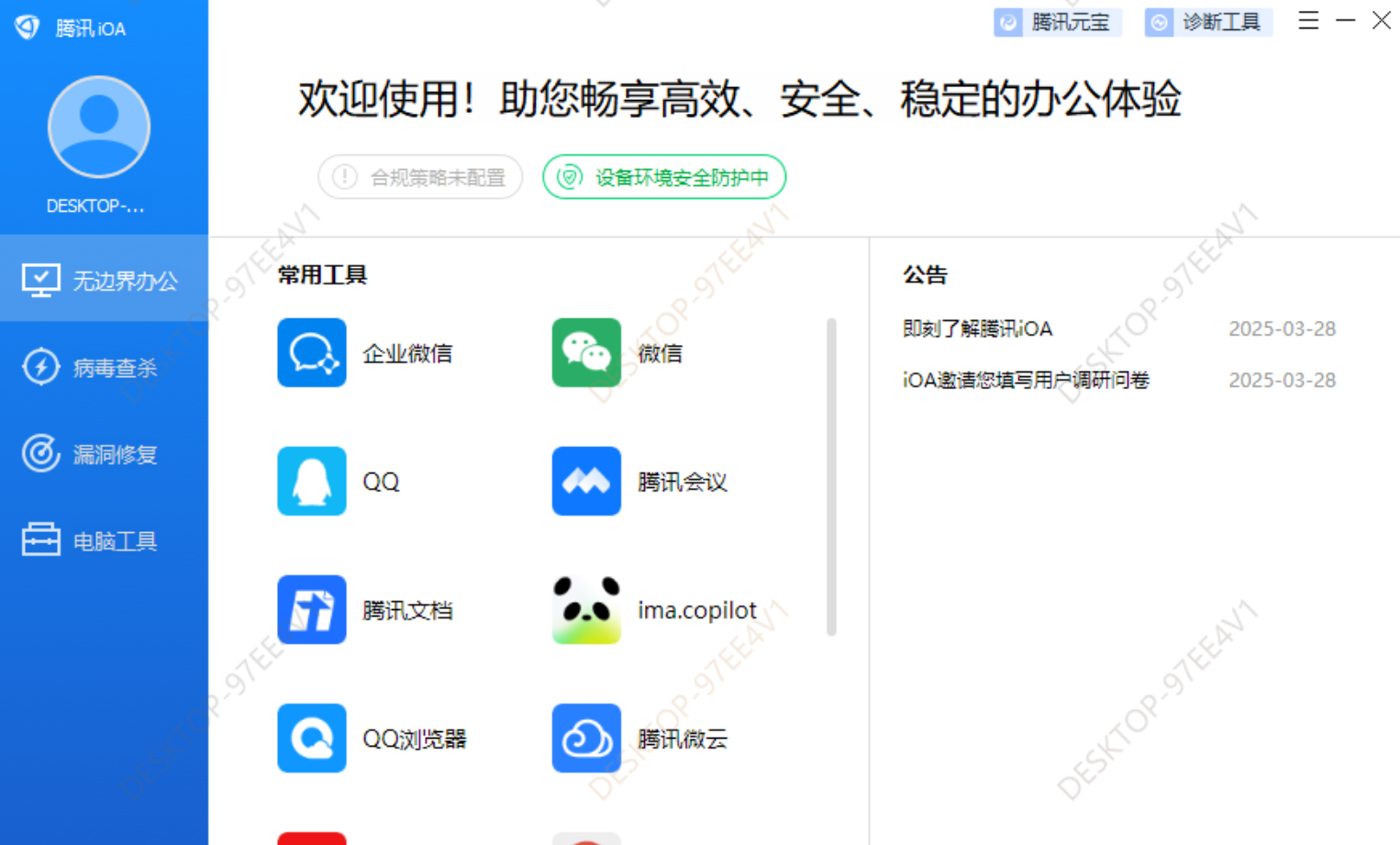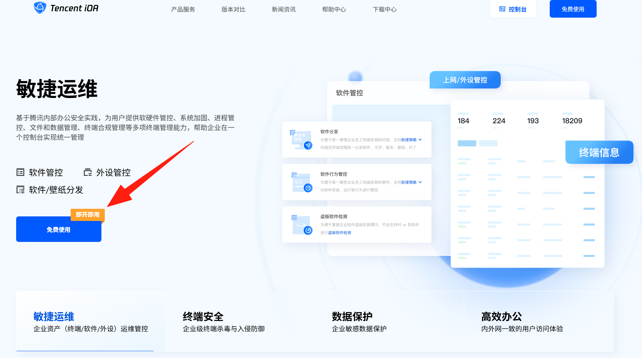 腾讯 iOA 免费版提供了企业级安全防护的核心功能,主要包括: