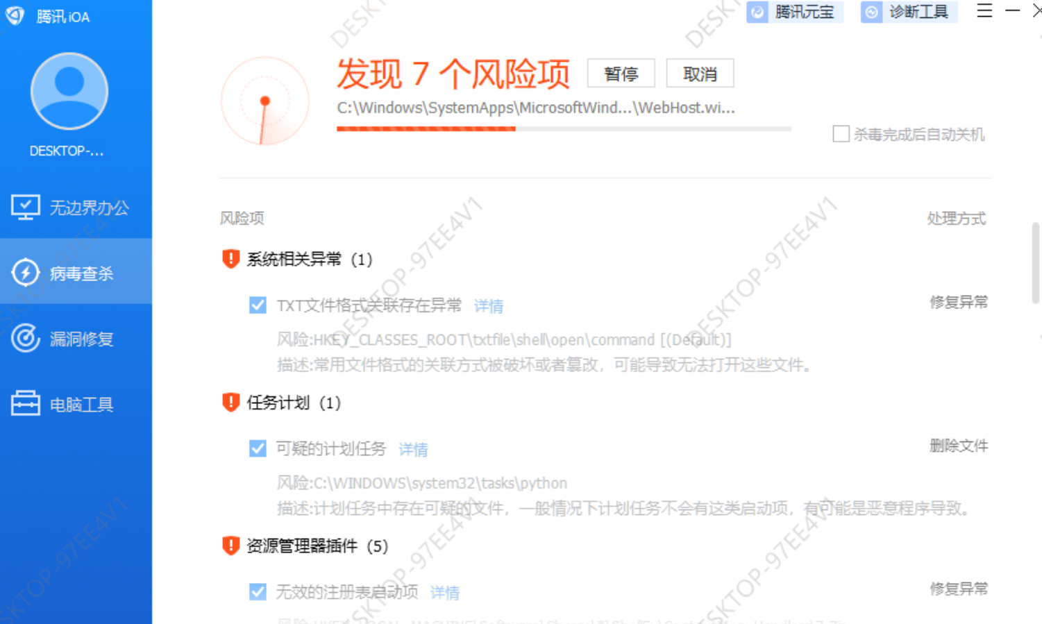 在我们的测试环境中,腾讯 iOA 进行了全盘扫描: