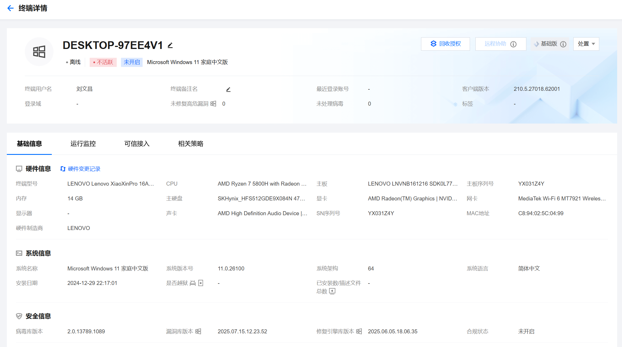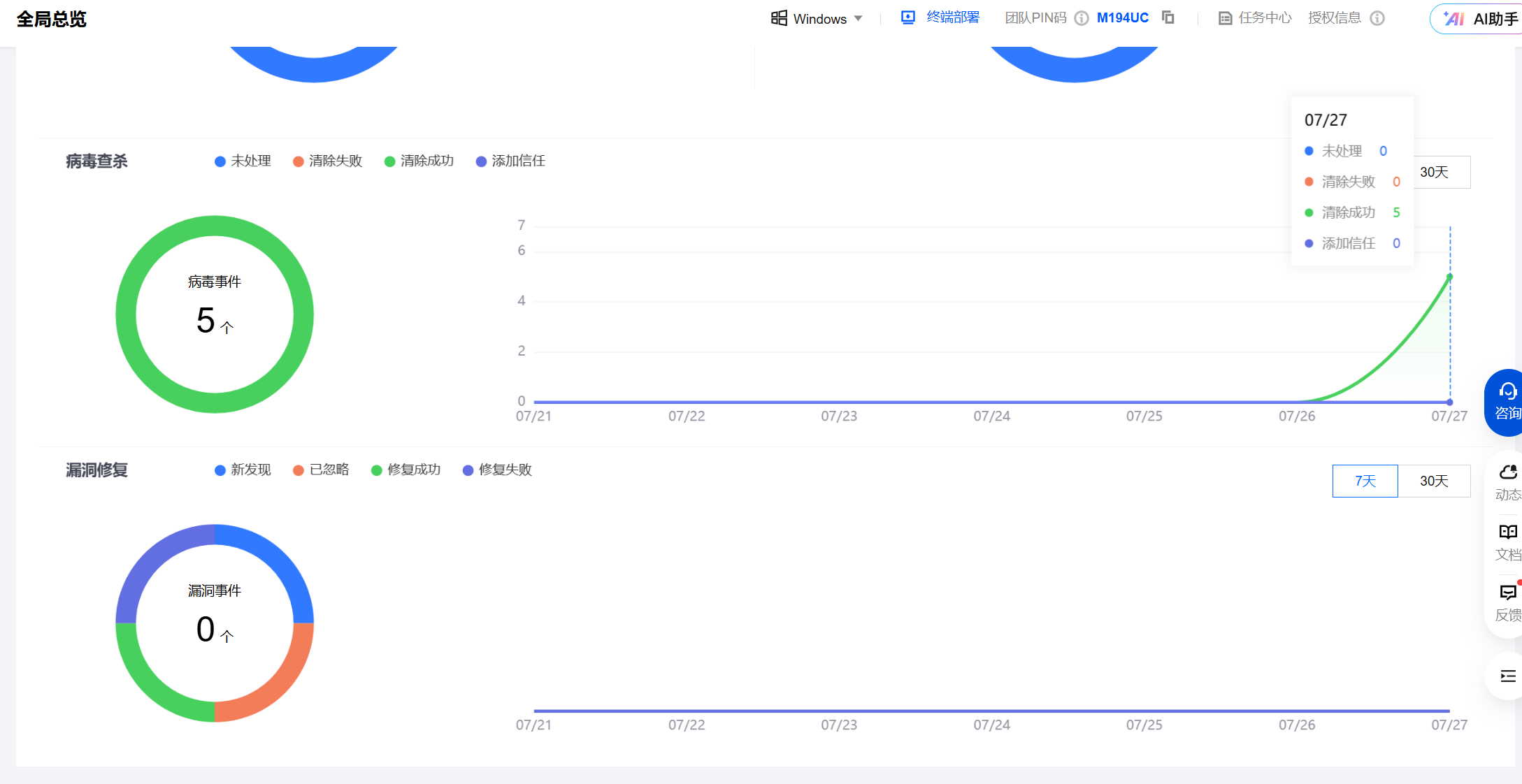 免费版本包含了企业级安全管理的核心功能,从基础的病毒防护到高级的集中管控,功能覆盖面广泛。特别是PIN码绑定的设备管理模式,为中小企业提供了简单高效的管理方案。