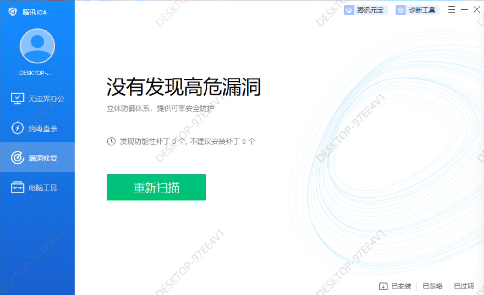 显示没有高危漏洞,看来电脑还是不错的。