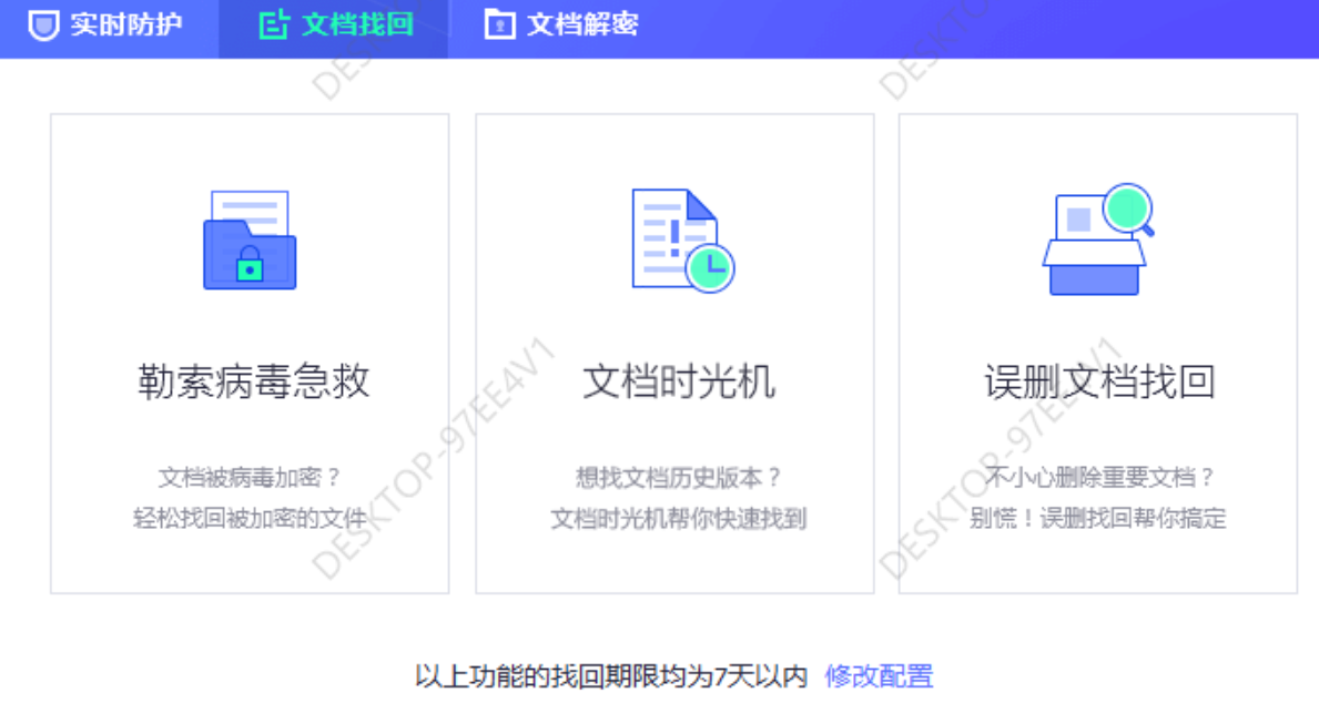 文档找回功能十分强大,提供了三种不同的应急措施,分别是病毒救济、文档回溯、误删找回
