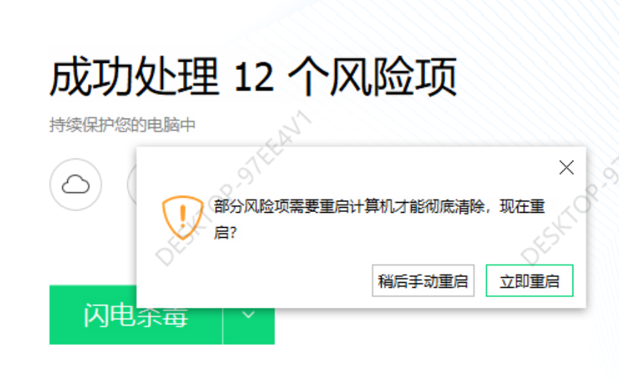 这个过程是非常漫长的,我在过程中记得看到的是扫描了5万个地方。一个是发现了12个风险项。卸载立即清理。