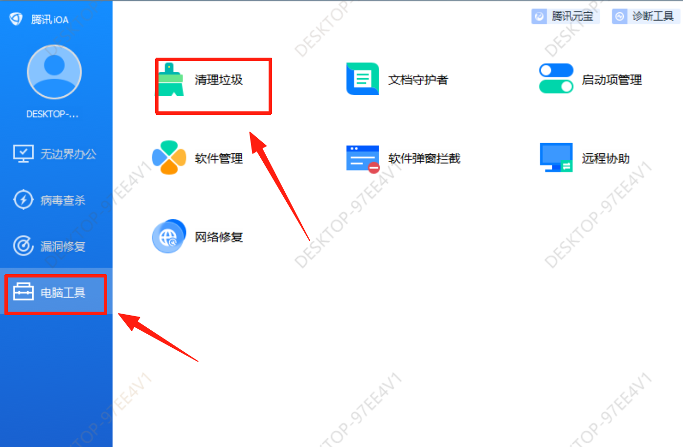 在左侧选择电脑工具,选择清理电脑垃圾。