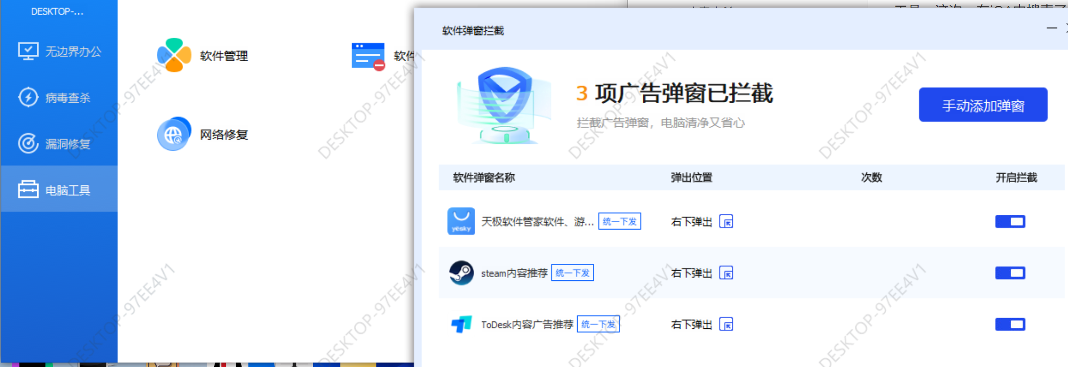 腾讯 iOA 的弹窗拦截功能在安装后自动启用,能够有效拦截: