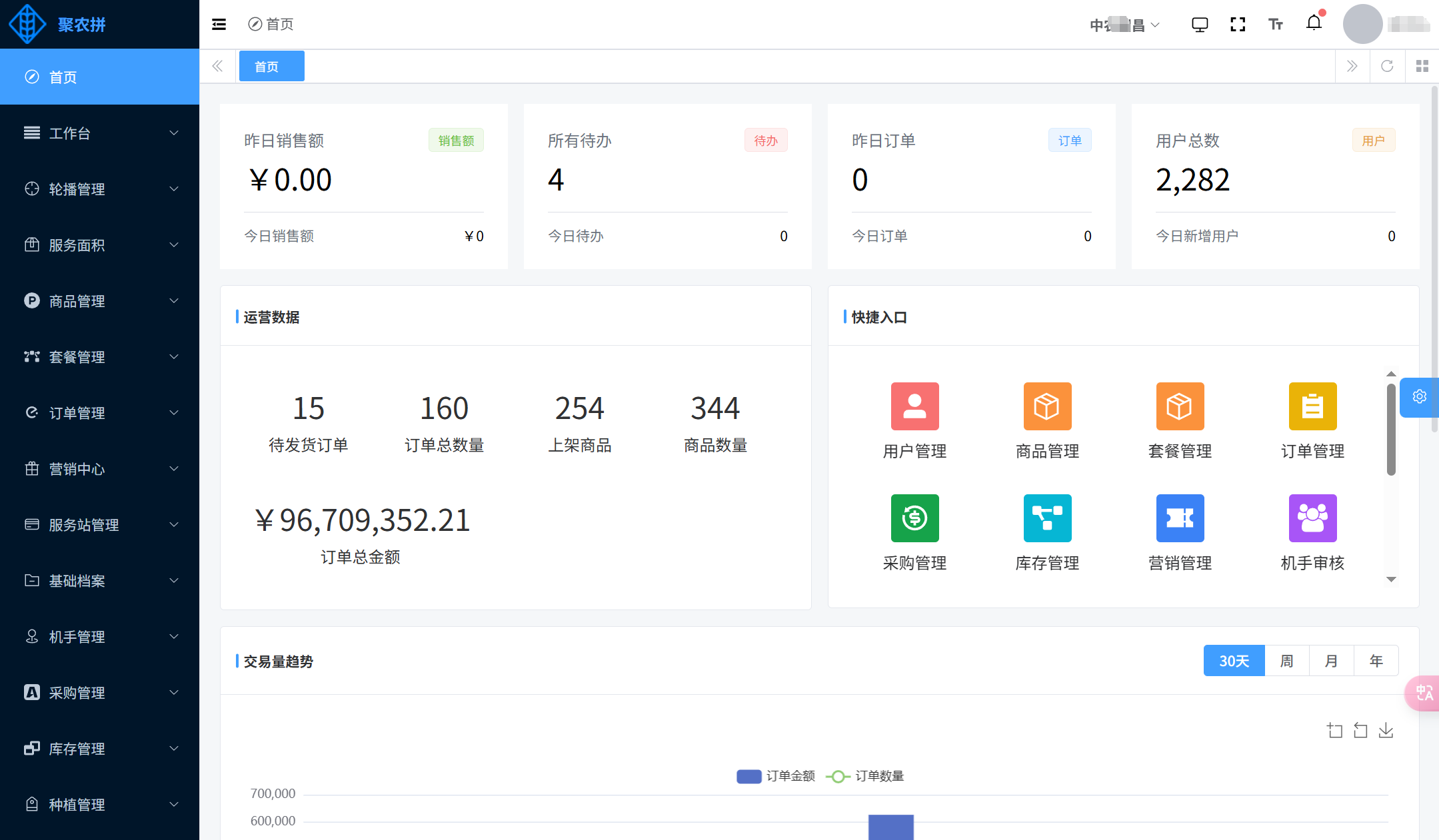 经过与中农领导班子、农户、农服人员、农资经销商等一线工作的经理们多方沟通交流,对农业生产的各个环节进行了深入调研和细致分析。基于这些一手资料,我们充分发挥自身在数字化技术领域的专业优势,为“聚农拼”平台量身定制了一套全面且精准的数字化解决方案。
