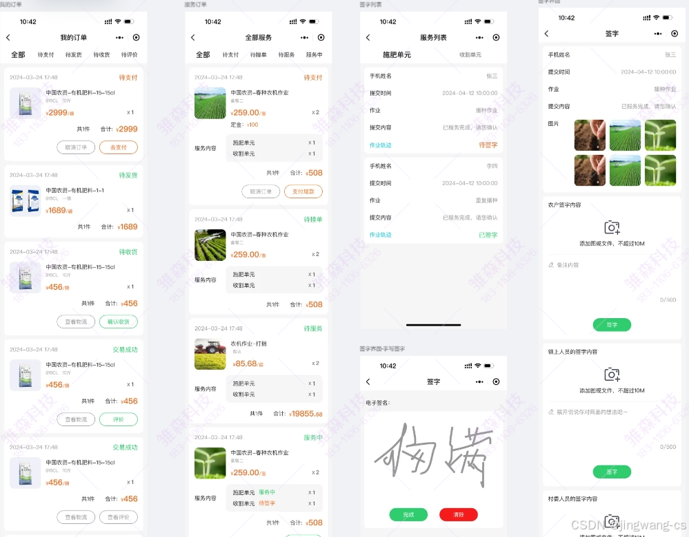 例如,在农资采购环节,平台通过大数据分析和智能推荐算法,为农户提供性价比最高的农资产品和供应商信息,帮助农户降低采购成本;在农机作业调度方面,平台利用实时定位和任务管理系统,优化农机作业路线和时间安排,提高作业连贯性和效率,减少转场作业时间。在机手合作方面,利用抢单、派单模式,合理利用闲置的机手人员,线下为农户服务,在线提交服务成果,农户签字验收全流程管理,大大提高了机手的积极性,提高了合作效率。