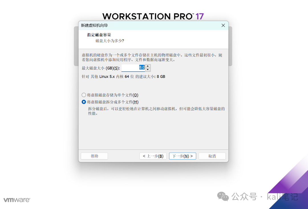 打开VMware Workstation 创建新的虚拟机。没什么特殊要求,但个人建议至少2核8G,根据自己的电脑配置经及自己需求来