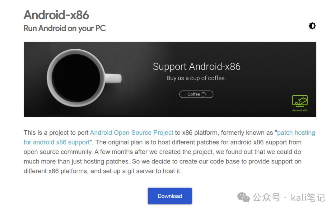 这时,我们可以考虑用vm搭建安卓虚拟机。接下来,我们访问官网:https://www.android-x86.org 下载最新版的镜像文件。