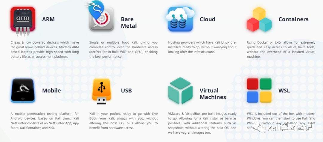我们在初学时,担心自己的电脑配置比较低。从而有些程序没法运行(如密码破解程序,需要很强的GPU性能)但是kali对系统资源要求比较低。我们在虚拟机中分配20G 1G/HZ等比较少的资源。kali就能运行。当然我们还可以将其安装在手机、手表、U盘等设备中,携带也更加方便。