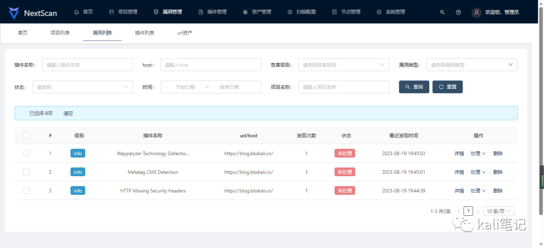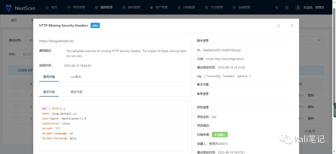 http://kali ip # 默认80端口 用户名:admin默认密码:nextscan