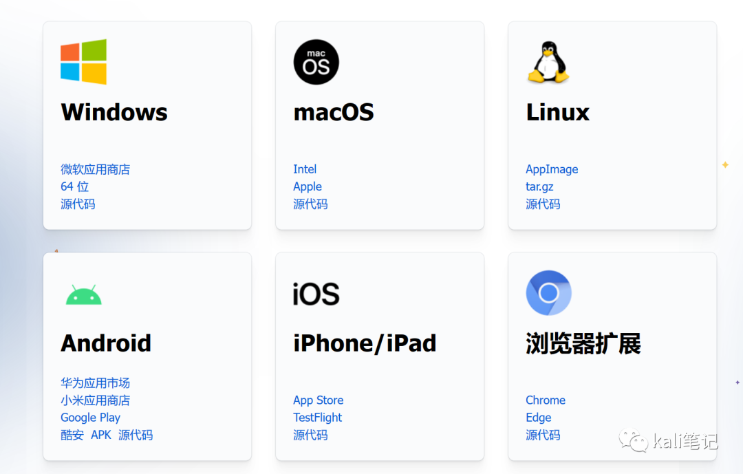 思源笔记支持跨平台,我们到官网根据系统类型下载对应的安装包到本地。这里我们以kali Linux安装为例。首先从官网下载对应的安装包。