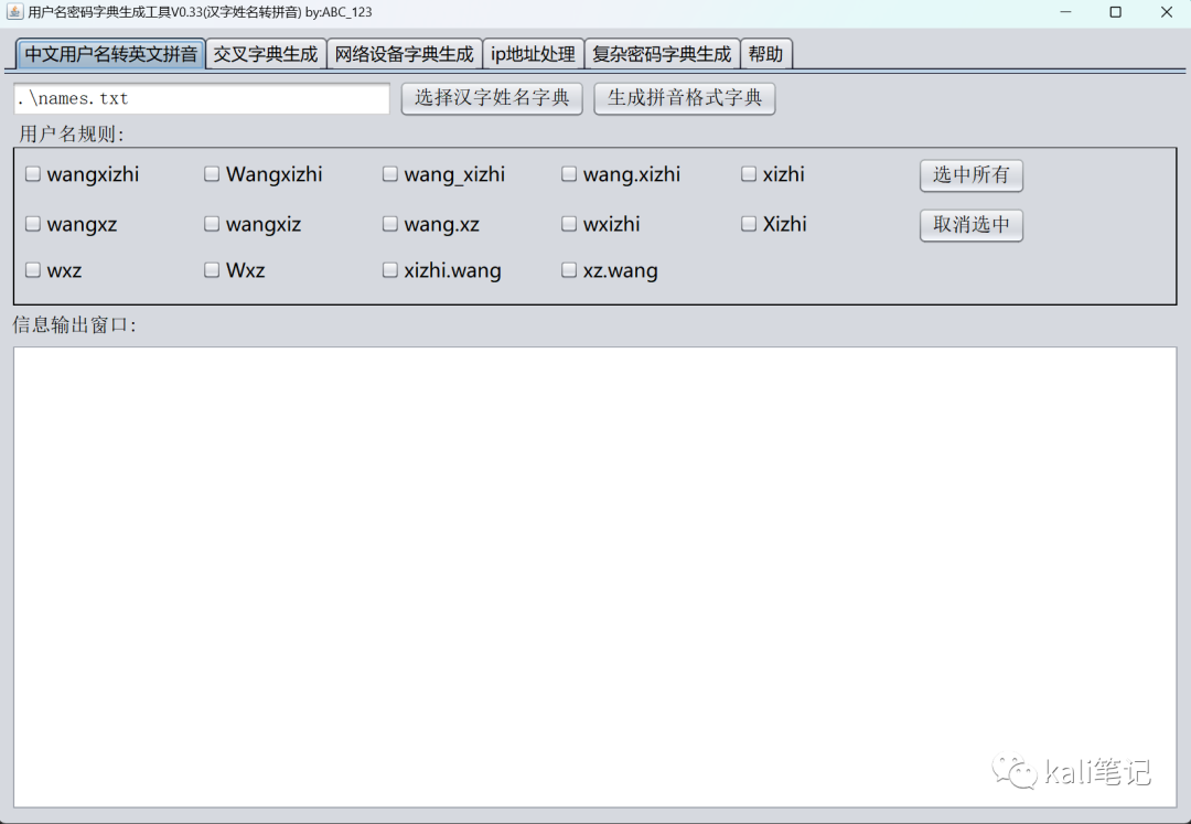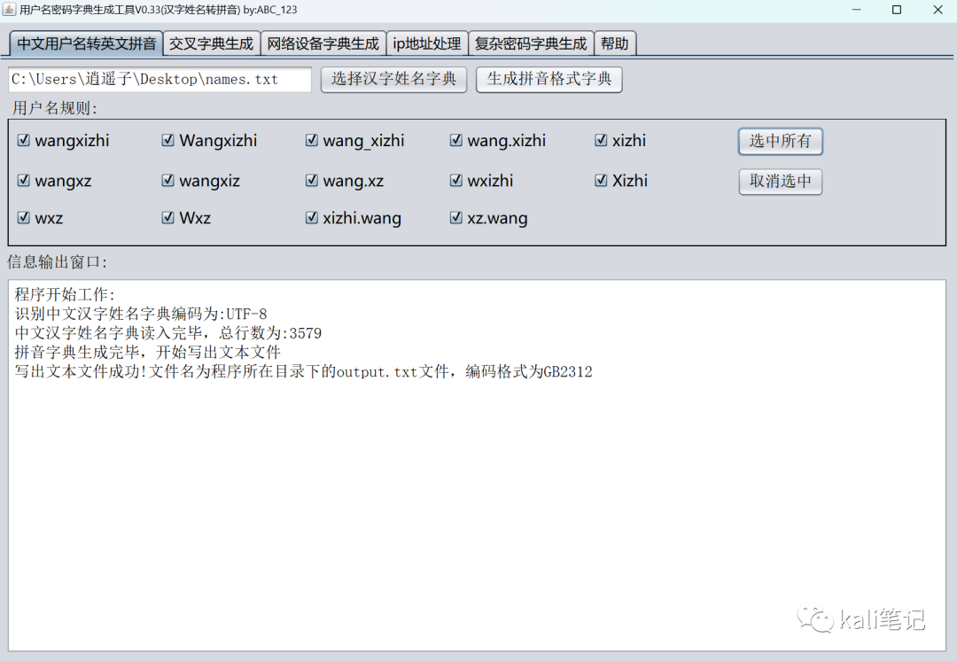 UserNameDictTools是一款能根据用户姓名、生日等信息。生成输入自己的专属密码字典。同时支持将中文汉字姓名转换为拼音格式,支持多达11种拼音格式的转换。